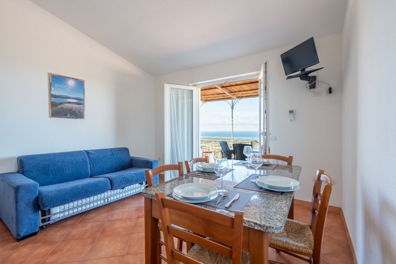 Appartamento al primo piano con una camera da letto matrimoniale/ doppio singolo, un bagno con doccia, soggiorno con cucina con 1 divano letto doppio, balcone arredato con vista mare. Climatizzatore caldo/freddo, WI-FI.